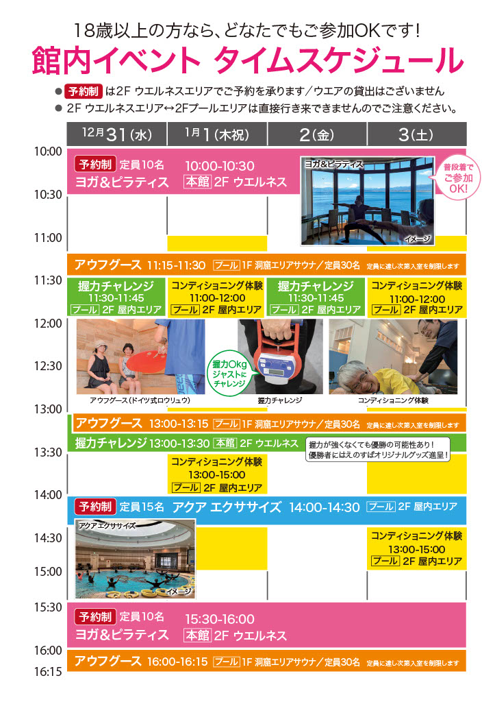 2025年12月31日(水)~2026年1月3日(土)までの4日間、下記のプログラムを実施します。