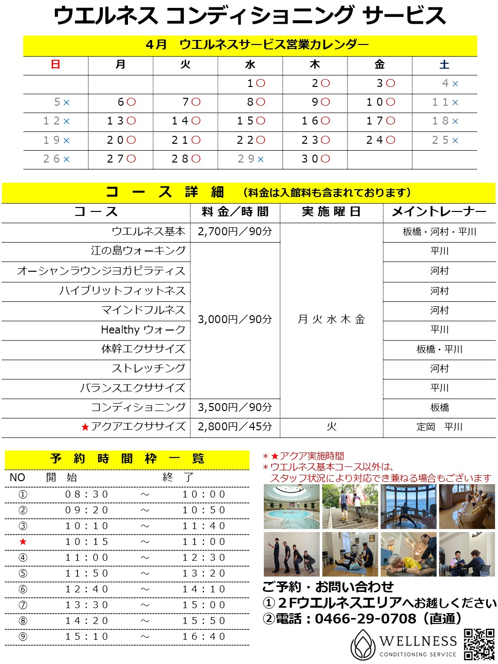 【2026年4月】ウエルネス営業カレンダー